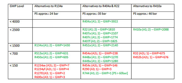 In er to better clarify the current situation and possible future scenarios, the refrigerant families can be divided three macro categories that can, in part, be associated with specific applications. Table 1 presents the three categories of synthetic refrigerants in increasing er of maximum working pressures.